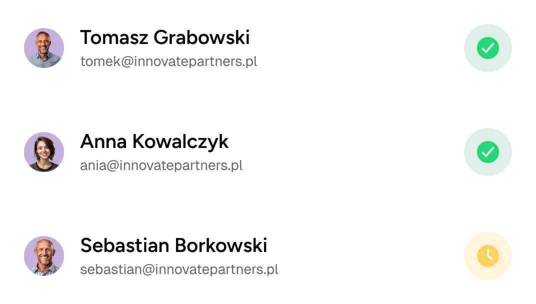 Wystarczy adres email i możesz zacząć. Nie potrzebujesz przekazywać wrażliwych danych personalnych ani całej struktury organizacyjnej, żeby przetestować rozwiązanie.
